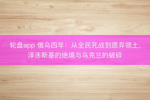轮盘app 俄乌四年:从全民死战到愿弃领土,泽连斯基的绝境与乌克兰的破碎