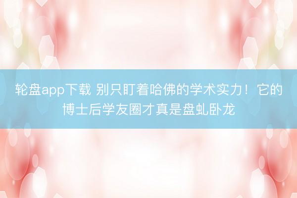 轮盘app下载 别只盯着哈佛的学术实力!它的博士后学友圈才真是盘虬卧龙