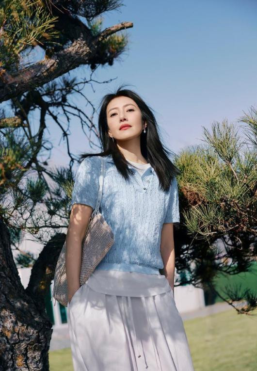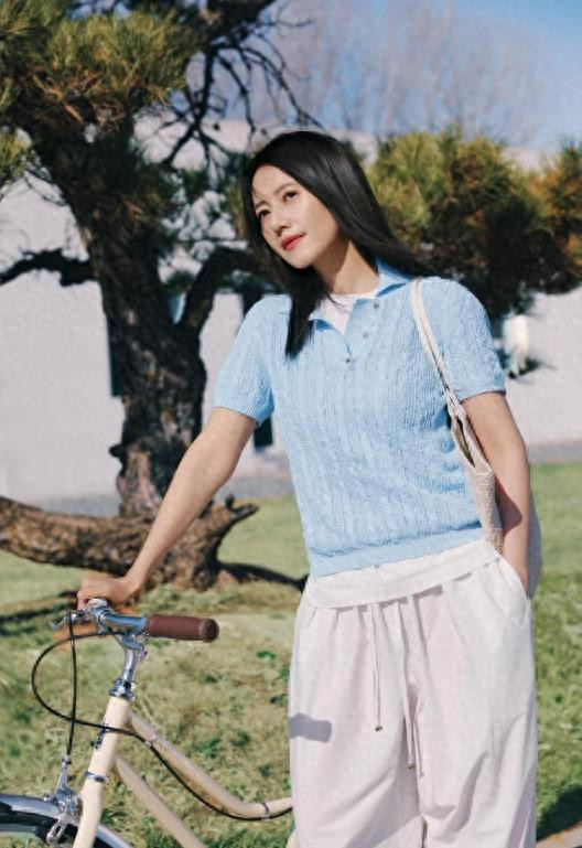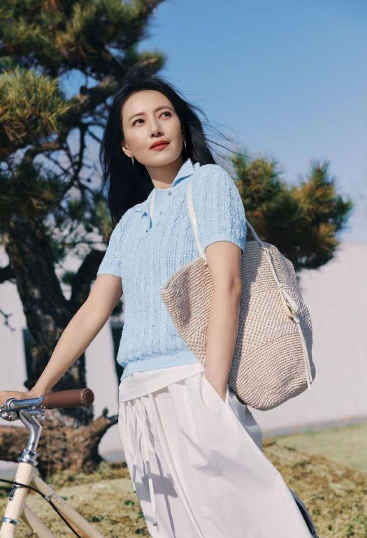 轮盘游戏 高圆圆的中年穿搭真雅致无比! 蓝色绞花衫+白T+小白裤, 减龄又高等