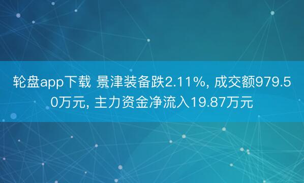 轮盘app下载 景津装备跌2.11%, 成交额979.50万元, 主力资金净流入19.87万元