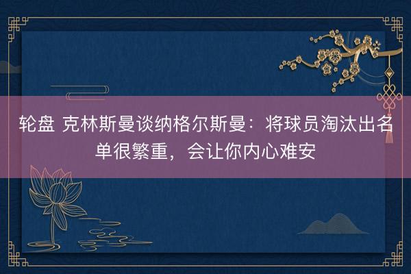 轮盘 克林斯曼谈纳格尔斯曼:将球员淘汰出名单很繁重,会让你内心难安