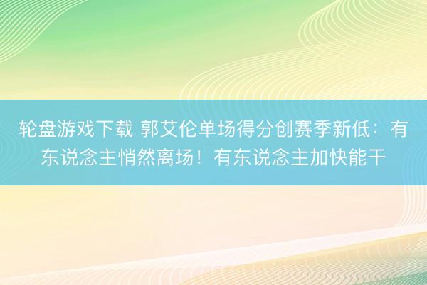 轮盘游戏下载 郭艾伦单场得分创赛季新低:有东说念主悄然离场!有东说念主加快能干