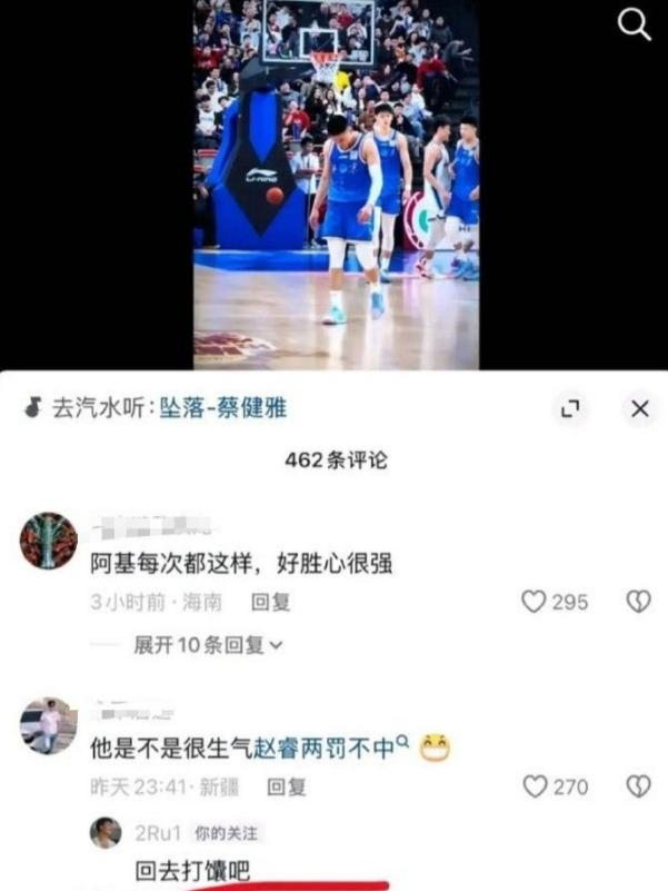 2月1号晚上,北京首钢队和青岛队打比赛,最后比分是87比89,北京队输了,赵睿在比赛快结束时两次罚球都没进,整场下来他得了10分,但有11次助攻,比赛结束后没多久,他在微博上回应新疆球迷说他“两罚不中”的话,用上了“回去打馕吧”“新疆边上待一待”“你们没有主观思想”这些说法。 {jz:field.toptypename/}