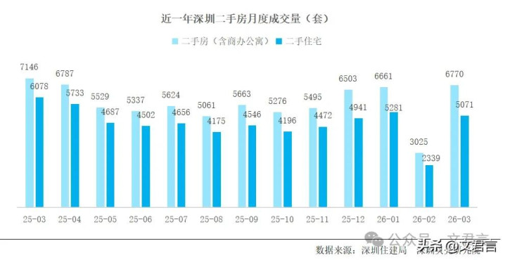 深圳楼市的“春雷”,在本年刚刚昔时的3月轰然炸响。 两大机构最新监测数据暴露,阛阓热度呈现爆发式增长,多项野心创下频年新高,一场由简直需求驱动的全面回暖正在上演。 深圳贝壳研讨院数据暴露,2026年3月深圳一二手房总成交量一举芜乱11851套,阛阓活跃度达到新高度。其中,新址成交环比飙升109%,二手房阛阓弘扬更为拉风,环比涨幅高达124%。这一数据印证了阛阓已走出低谷,插足快速复苏通谈。