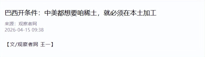 对中国而言,与巴西调和既是保险资源供应的时弊阶梯,亦然推动稀土本事走向外洋、竣事共赢的机会。 将来,跟着巴西政策落地和中巴调和深远,这场“本事换资源”的博弈,终将走向更求实、共赢的将来,而巴西能否竣事产业升级,要道在于能否补皆自己短板,在大国博弈中守住策略定位。 不雅察者网:巴西开条款:中好意思都思要咱稀土,就必须在原土加工