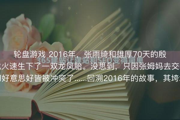 轮盘游戏 2016年,张雨绮和雄厚70天的殷商袁巴元闪婚,不久后就火速生下了一双龙凤胎。没思到,只因张姆妈去交一次物业费,一切好意思好皆被冲突了......回溯2016年的故事,其垮塌的发轫并非在聚光