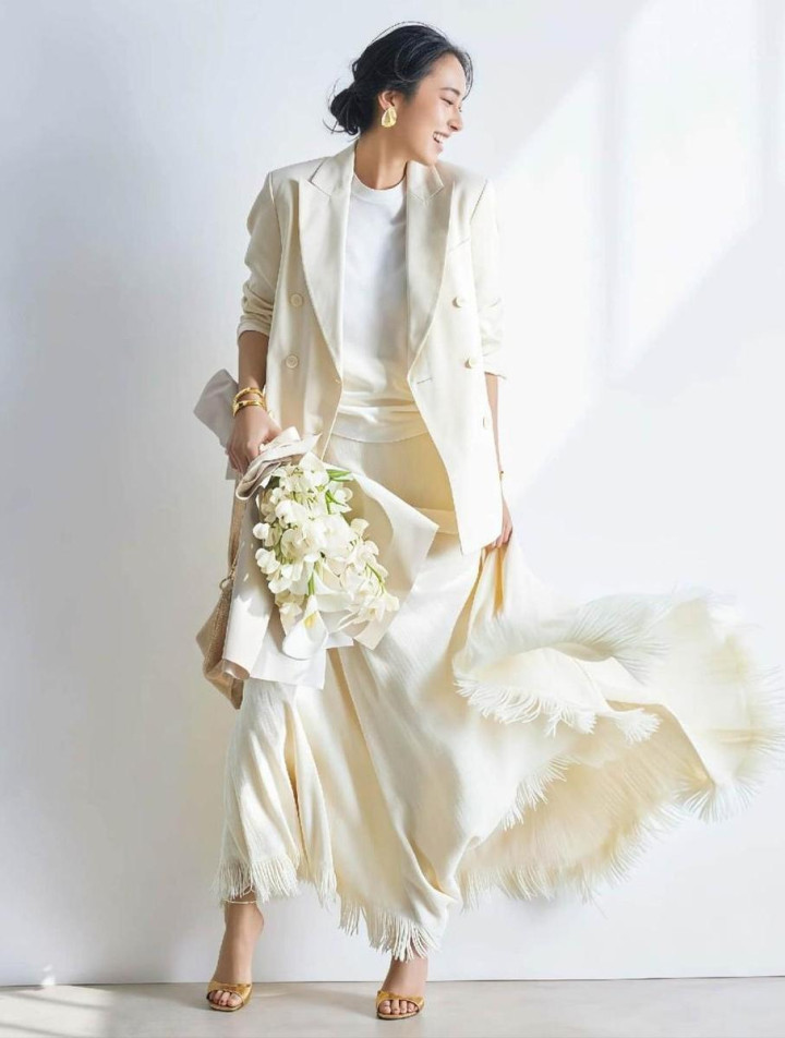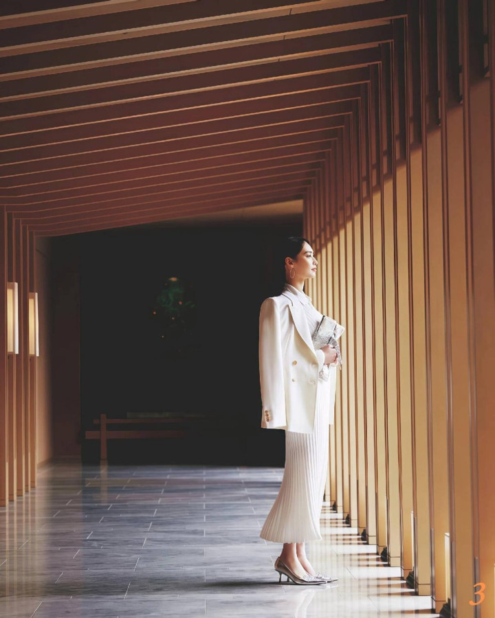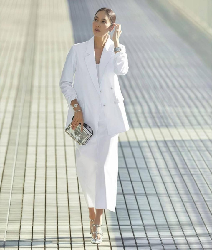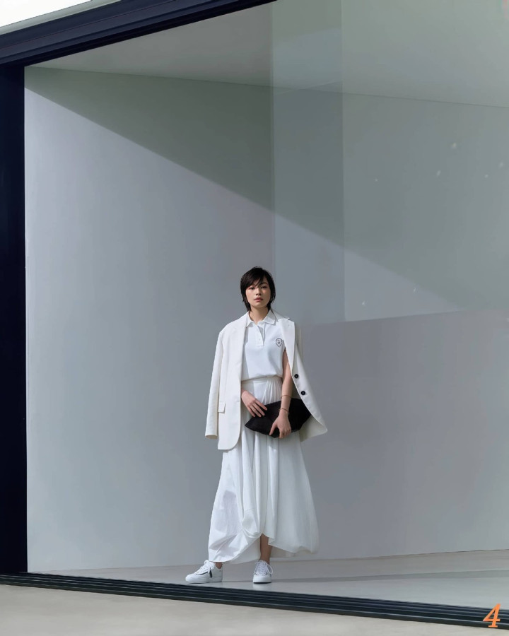 三、与其胡乱搭配,不如“尽心组合”反而更好意思 决议1.白色正肩西装+白色直筒裙,鞋子风雅点 穿搭其实莫得轨范谜底,每个东说念主王人有无穷种可能性,像这种“并立白”的搭配,就需要卓越一个亮点,比如冷白色正肩西安设白色直筒裙,脚上的那双铆钉低跟凉鞋,转眼就能进步风雅感。