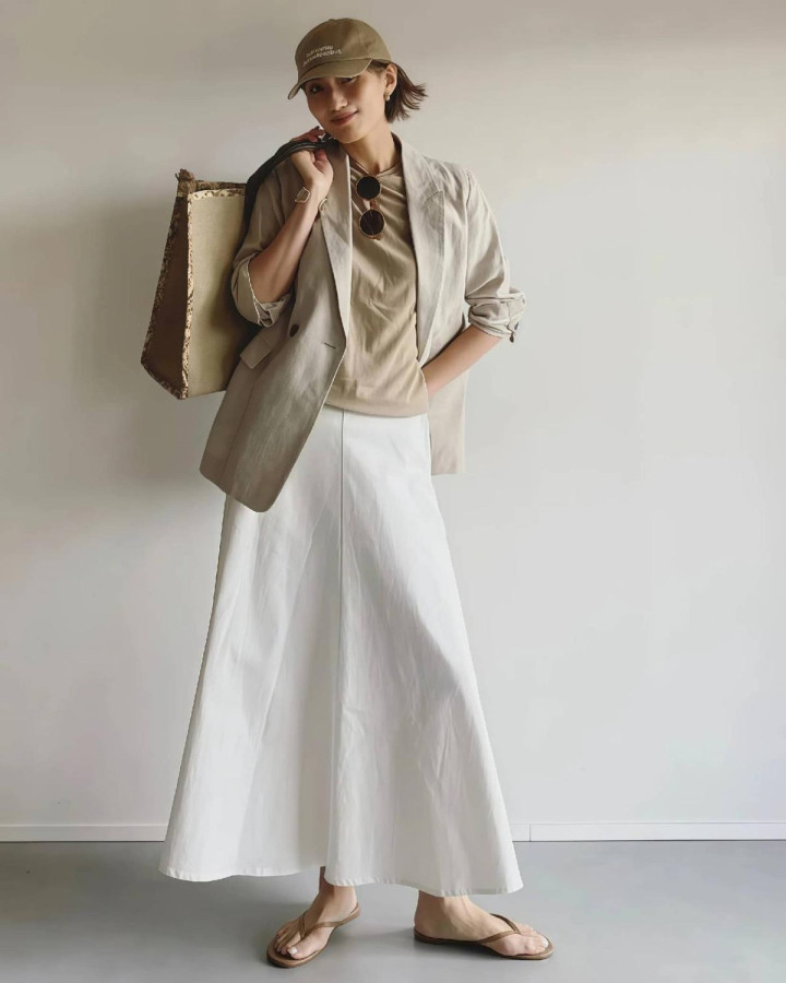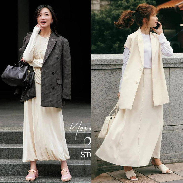 Point2.包涵“版型”之间的变化,不要太调治 ★西装越宽松,白裙子一定要“收” 版型莫得变化的穿搭,要么直上直下,要么魁梧松垮,毫无线条好意思可言!春天穿西装和小白裙时,一定要收拢“松紧互补”或“同宽对冲”的相关,西装越宽松,裙子就要选直筒、包臀、修身A字款。
