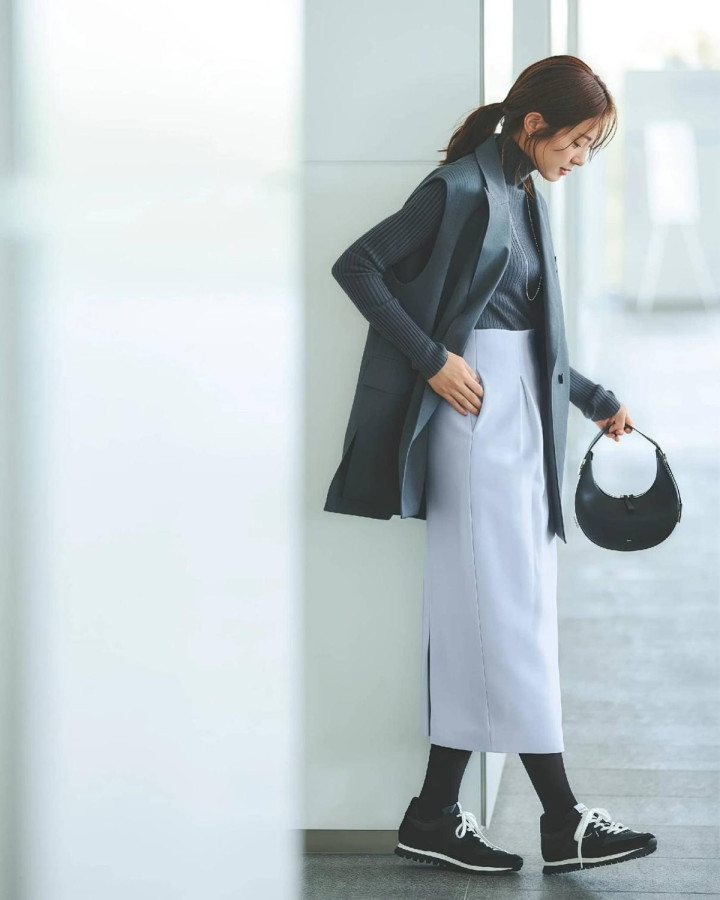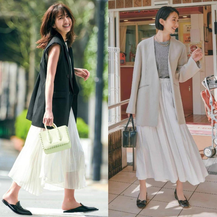 决议2.西装气魄朽木难雕,裙子就要“和缓点” 如果你的衣橱里有一件气魄朽木难雕的西装,那么千万不要配西裤,不然会显得严肃又让步,下身换成更灵动的彩色风琴裙,跟着你的一坐一齐,裙摆会呈现出优好意思的弧度,再配双尖头穆勒鞋,绝好意思!