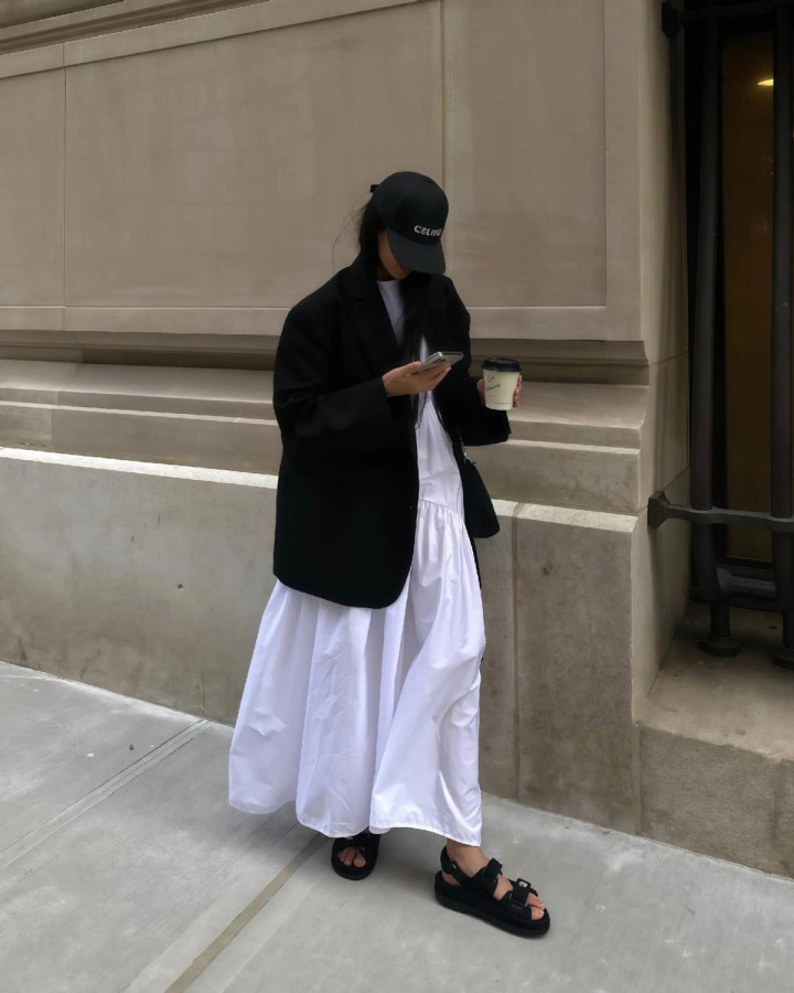 一、凭什么“西服+初恋小白裙”不错在春天刷屏? 谜底1.刚柔并济,好气坦白接翻倍 好气质王人是穿出来的,换上一件干练利落的西装,应用小白裙中庸闇练感,组合在一齐又好意思又飒!西装面料持续王人相比硬挺,而裙子则垂感完满,上身很有女东说念主味,流动的裙摆,转眼就增添了一点柔好意思气味。