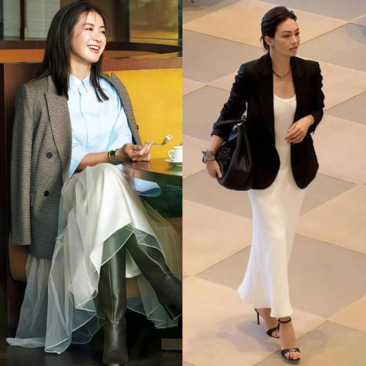 ★西装长度,决定了裙子的横蛮 你知说念吗?一件西装的长度,持续还决定了裙子的横蛮,长度到胯部位置的西装,更符合搭配中长裙,能够纵向拉长体态比例,幸免刚好卡在膝盖的中裙,容易显腿短不说,还会穿出五五分的欢悦。