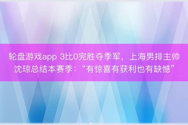 轮盘游戏app 3比0完胜夺季军,上海男排主帅沈琼总结本赛季:“有惊喜有获利也有缺憾”
