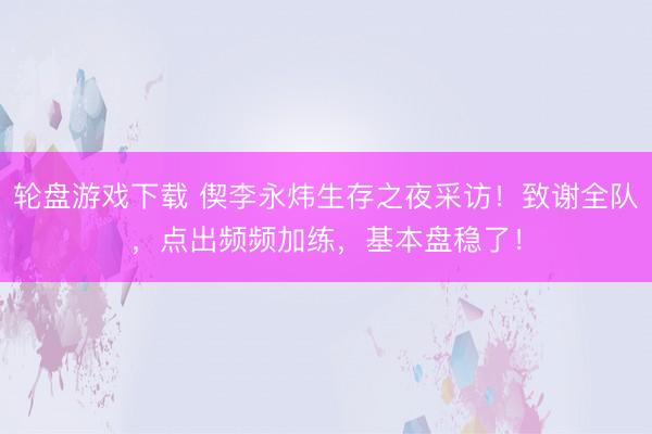 轮盘游戏下载 偰李永炜生存之夜采访!致谢全队,点出频频加练,基本盘稳了!